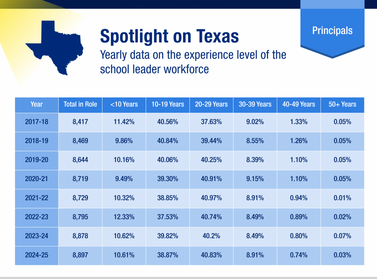 - Texas Education Agency. Administrator Experience 2017-18 through 2024-25.