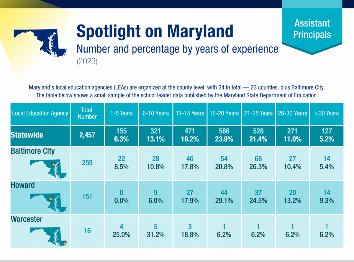 - Maryland State Department of Education. Professional Staff by Type of Degree and Years of Experience.
